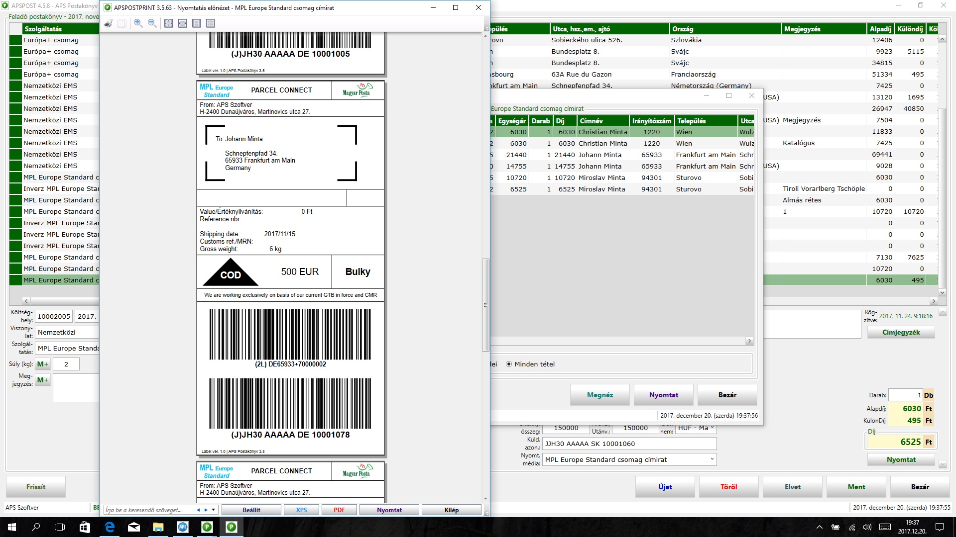 - feladóra, borítékra, etikettre és nyomtatványokra vonatkozó számos beállítási lehetőség,